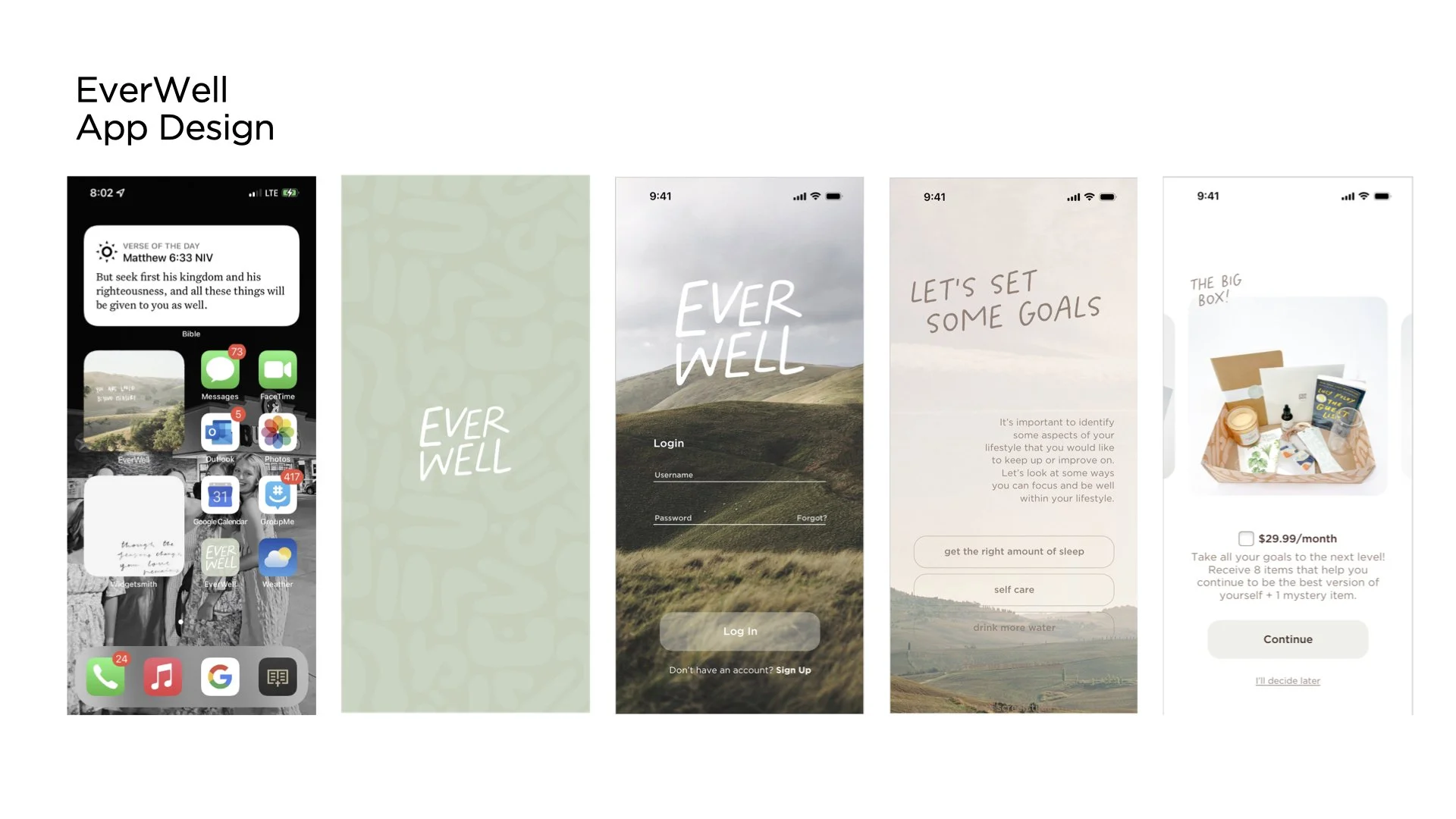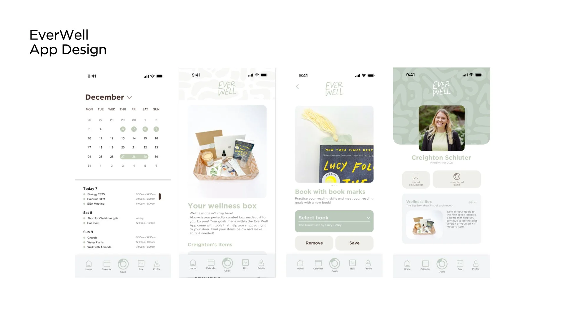 EverWell is a wellness app that helps women create wellness goals, track their progress, and put their habits into action with EverWell’s Wellness Subscription Box. As goals and progress is made, EverWell’s App curates a custom box for each user to help maintain the progression of their wellness. Boxes range in price and give the user ability to switch out items if they believe something may be better for them.
